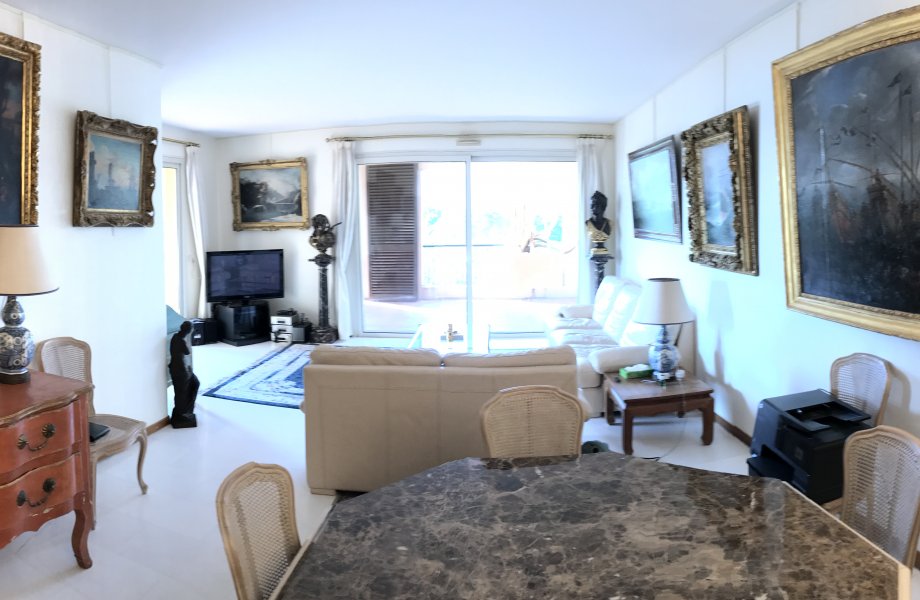 Il se compose d’un hall d’entrée, grand séjour, cuisine équipée indépendante, deux chambres avec salles de bains attenantes, wc invités, placards et deux belles terrasses avec vue mer, Roseraie et jardins.