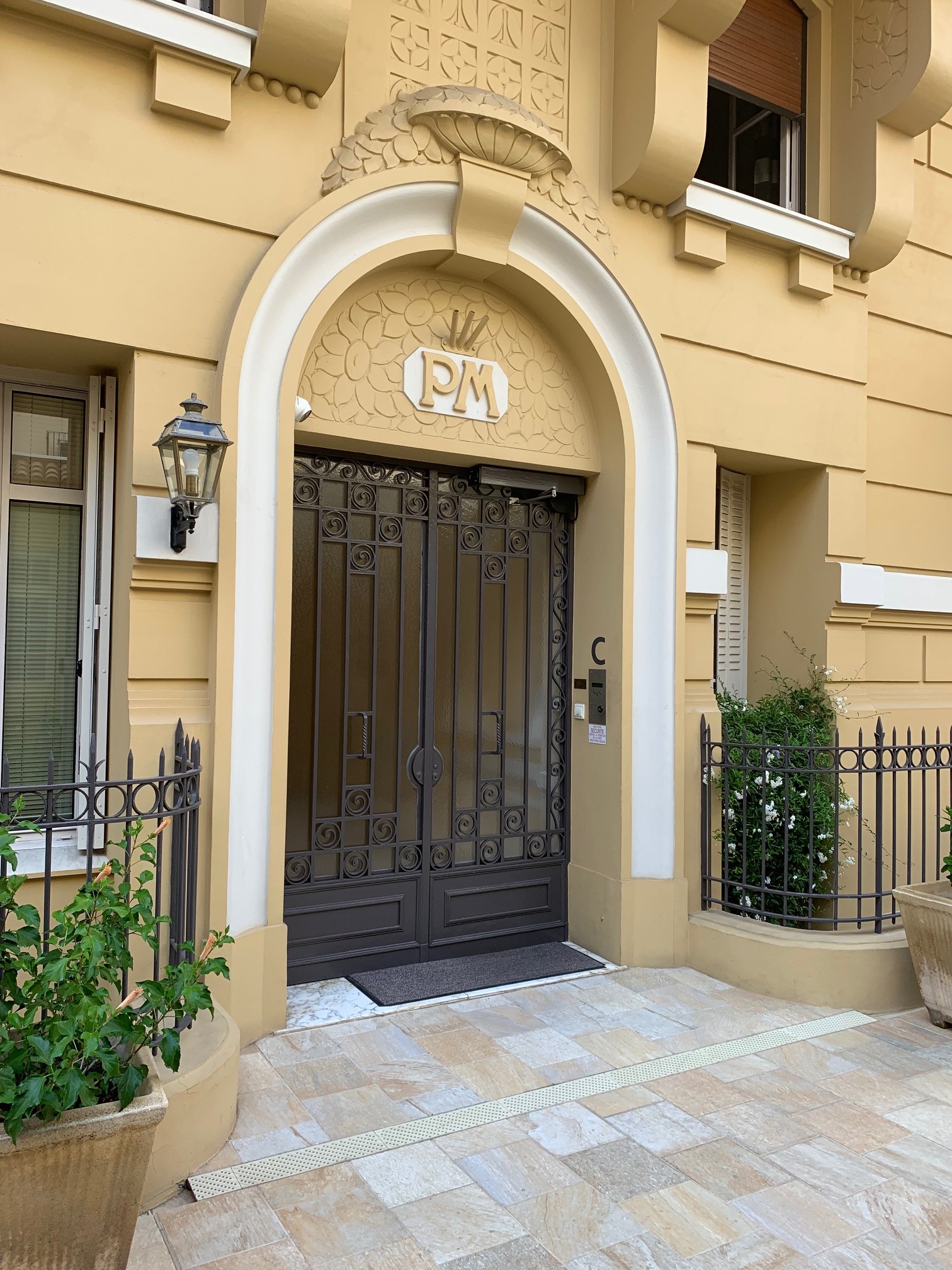 Dans un immeuble bourgeois situé sur le boulevard des Moulins, proche des Jardins du Casino.