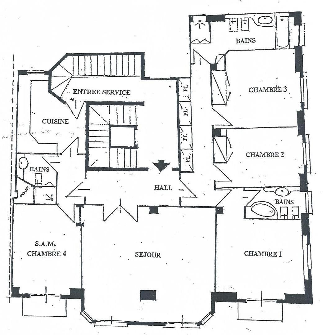 Appartement 5 pièces d’une surface de 180 m² composé d’une entrée, une cuisine équipée, un double séjour, 4 chambres, 2 salles de bains et une salle de douche.