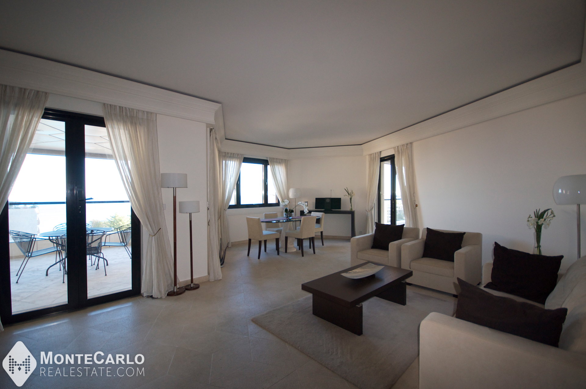 Close to the Casino gardens, set in one of the most prestigious buildings in the Principality, this beautiful sunny apartment boasts high quality finishing: marble floors and bathrooms, modern fully fitted kitchen, A.C.. Pleasant town view and brief view on the sea.