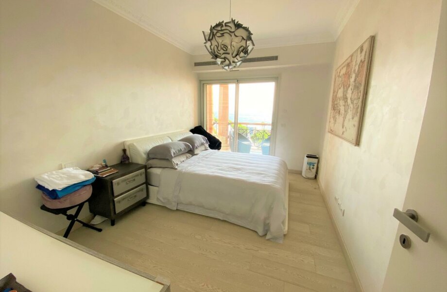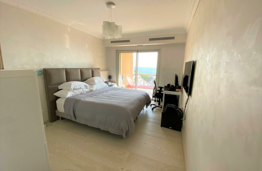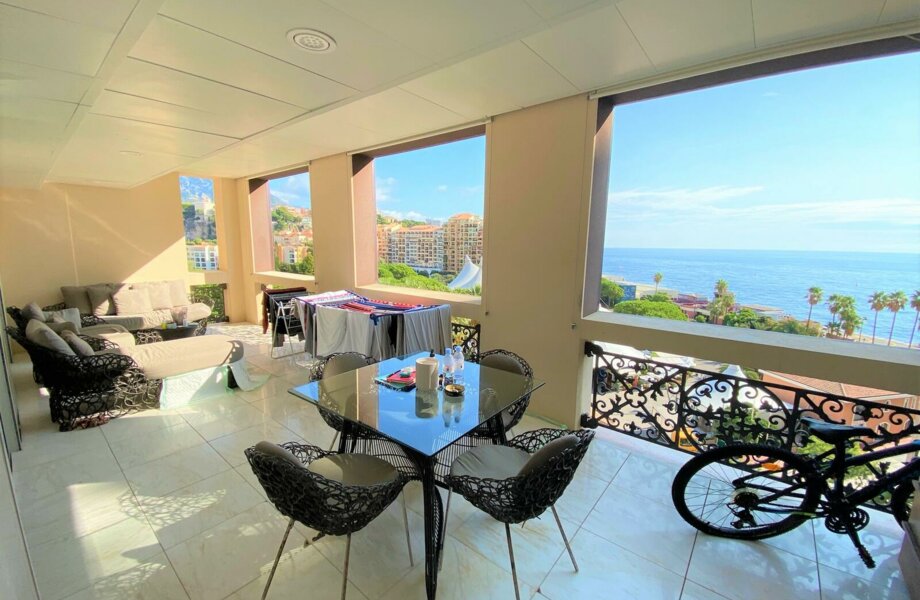 3 rooms renovated, large apartment ( 135 sqm) – terrace ( 42 sqm) with a total area of about 177 m2 completely renovated with high-end materials and beautifully furnished in a modern way. On the high floor, its wide terraces enjoy a magnificent view of the sea and Fontvieille.