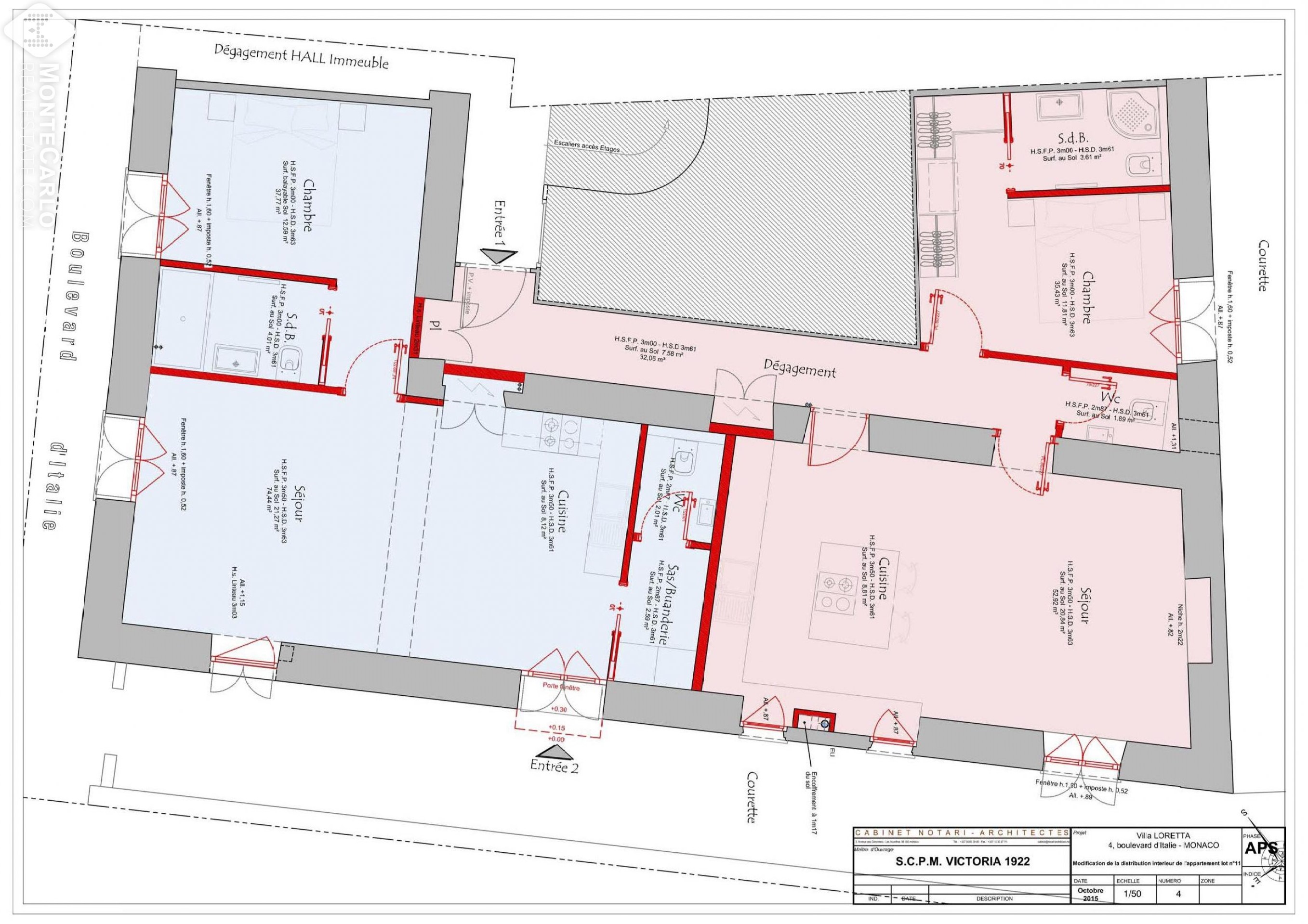 Sa superficie totale est d’environ 125m², l’appartement situé au RDC d’un immeuble bourgeois. Possibilité de transformation en deux appartements de 2 pièces principales.